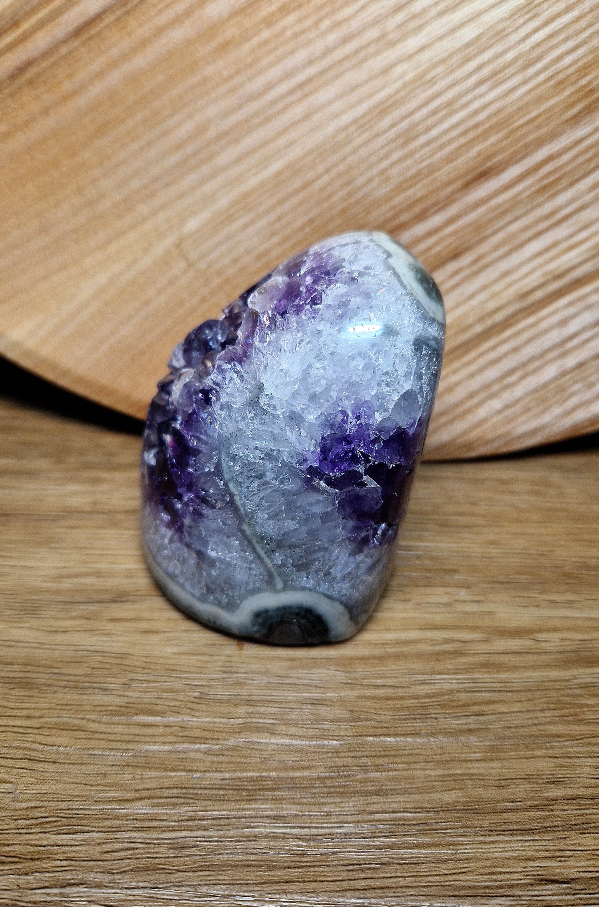 Der Amethyst gilt als klassischer Schutz- und Heilstein. Er fördert Ruhe, Konzentration und innere Balance, während er zugleich negative Energien fernhält. Als dekorativer Cluster bringt er nicht nur edle Schönheit in jeden Raum, sondern auch eine harmonische, entspannende Atmosphäre. Jedes Stück ist ein einzigartiges Naturwunder.