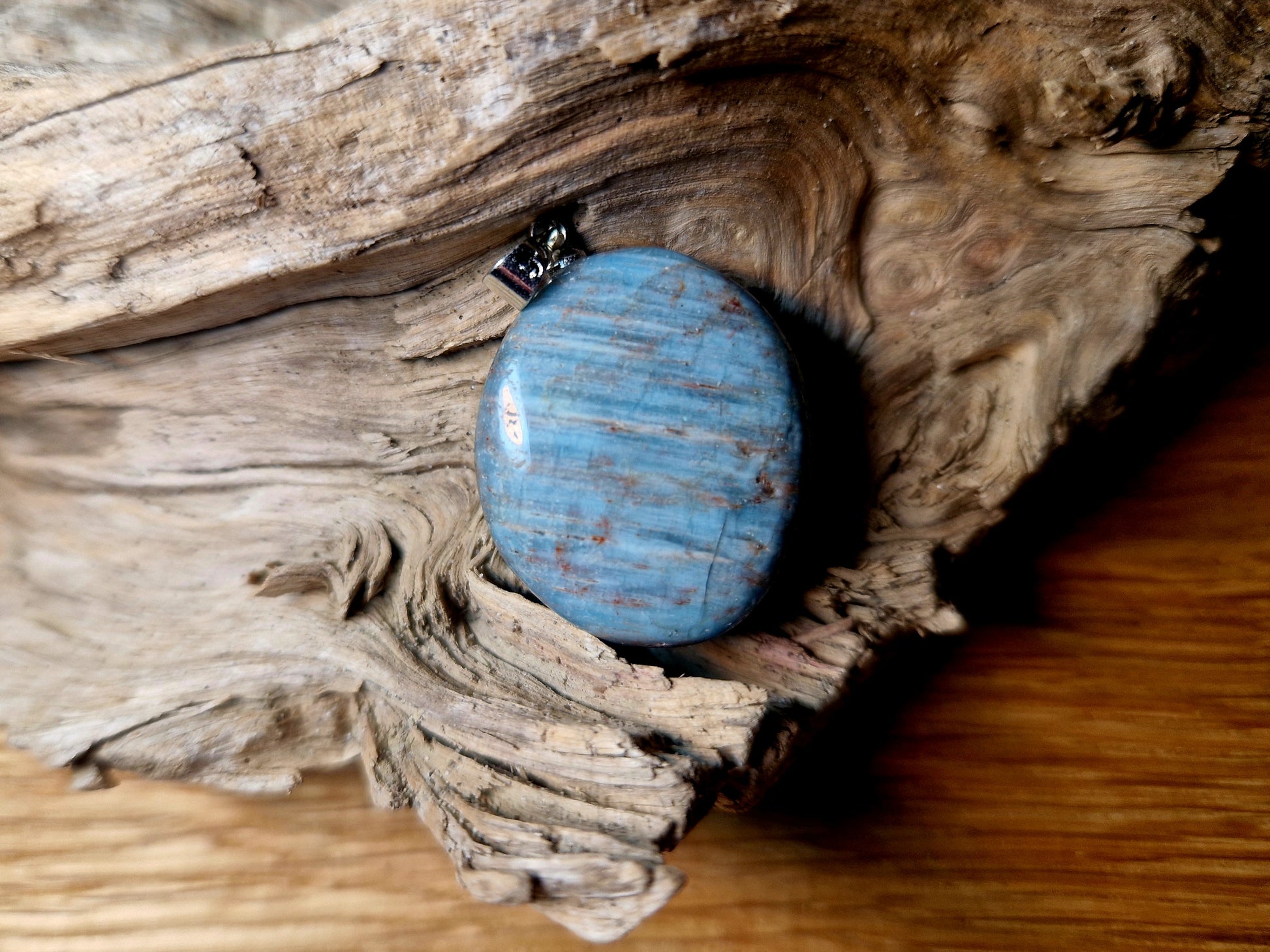 Dieser wunderschöne Apatit-Anhänger in leuchtendem Blau steht für Klarheit, Motivation und Ausdruckskraft.