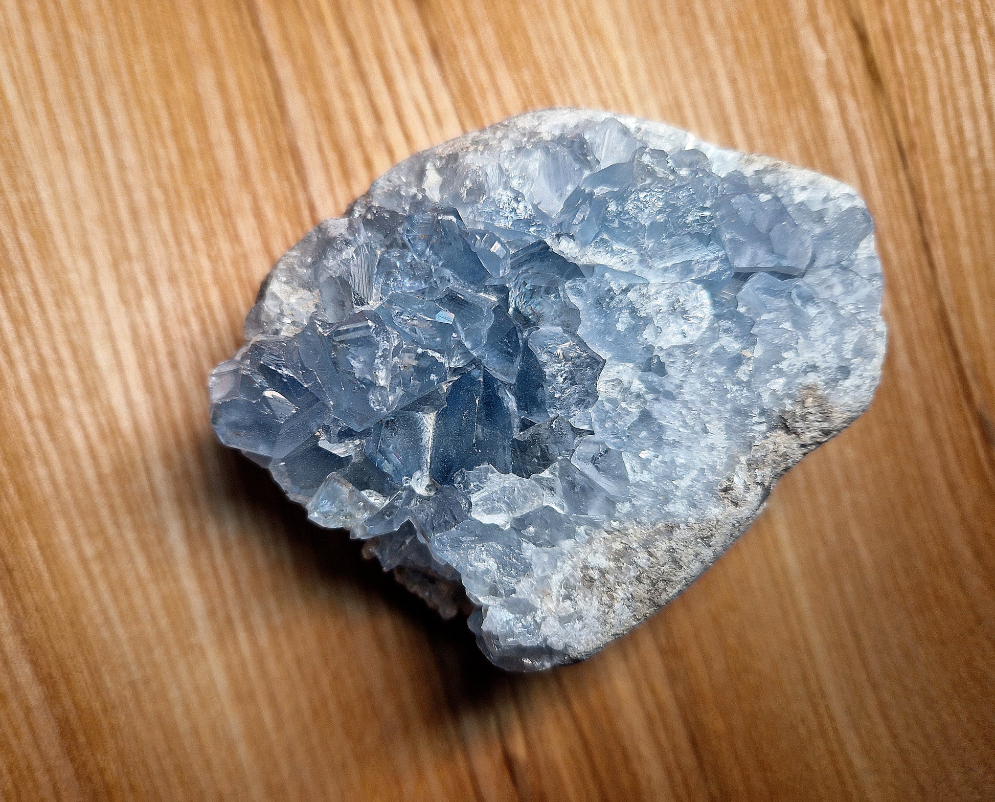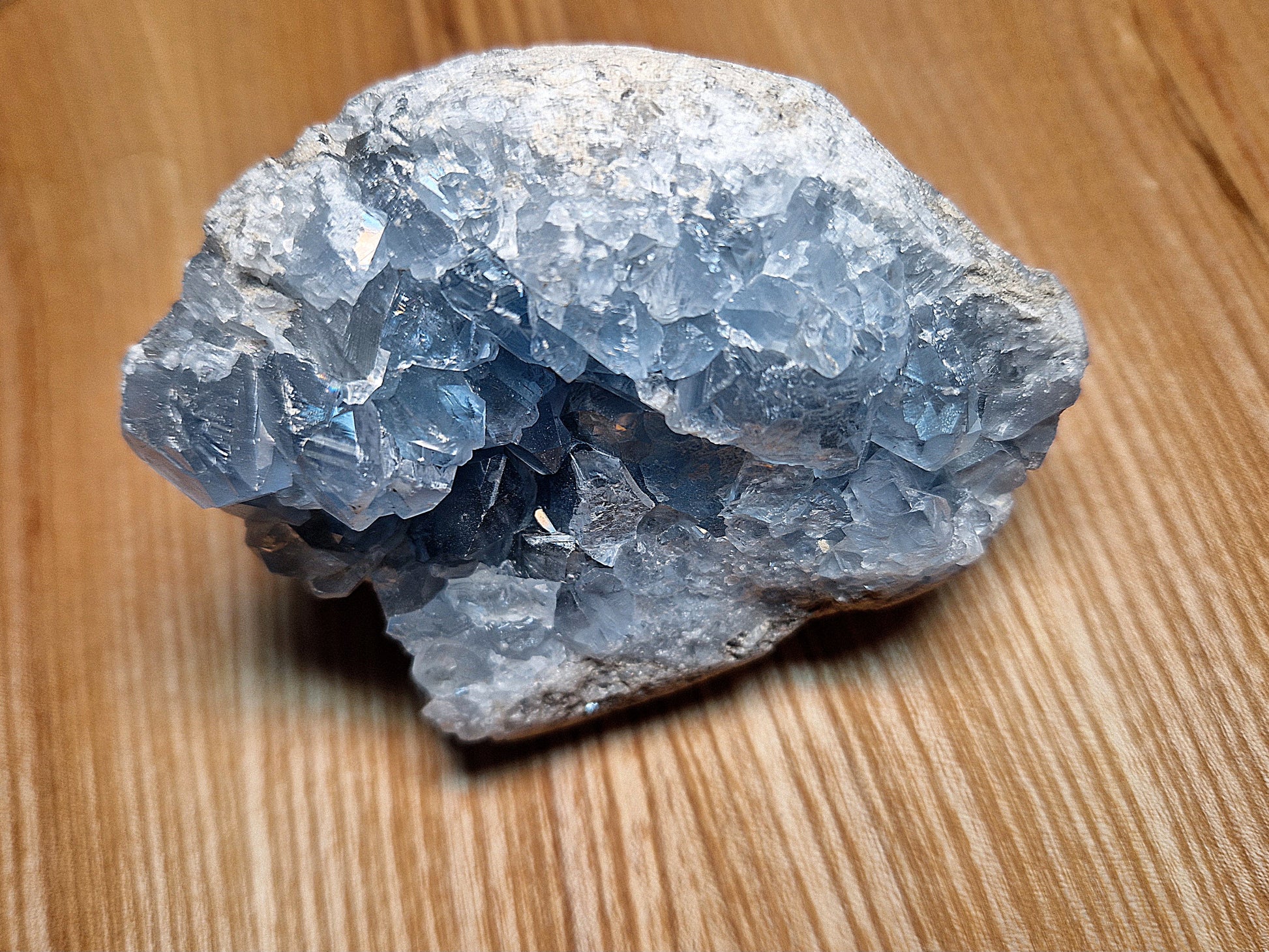 Der zart hellblaue Coelestin fasziniert durch seine kristallklare Schönheit und beruhigende Ausstrahlung. Er wird als Stein der Harmonie und Gelassenheit geschätzt, unterstützt innere Ruhe und schenkt neue Klarheit. Ideal zur Meditation, als dekoratives Naturwunder oder zur Schaffung einer friedvollen Atmosphäre im Wohnraum. Jeder Cluster ist ein einzigartiges Geschenk der Natur.