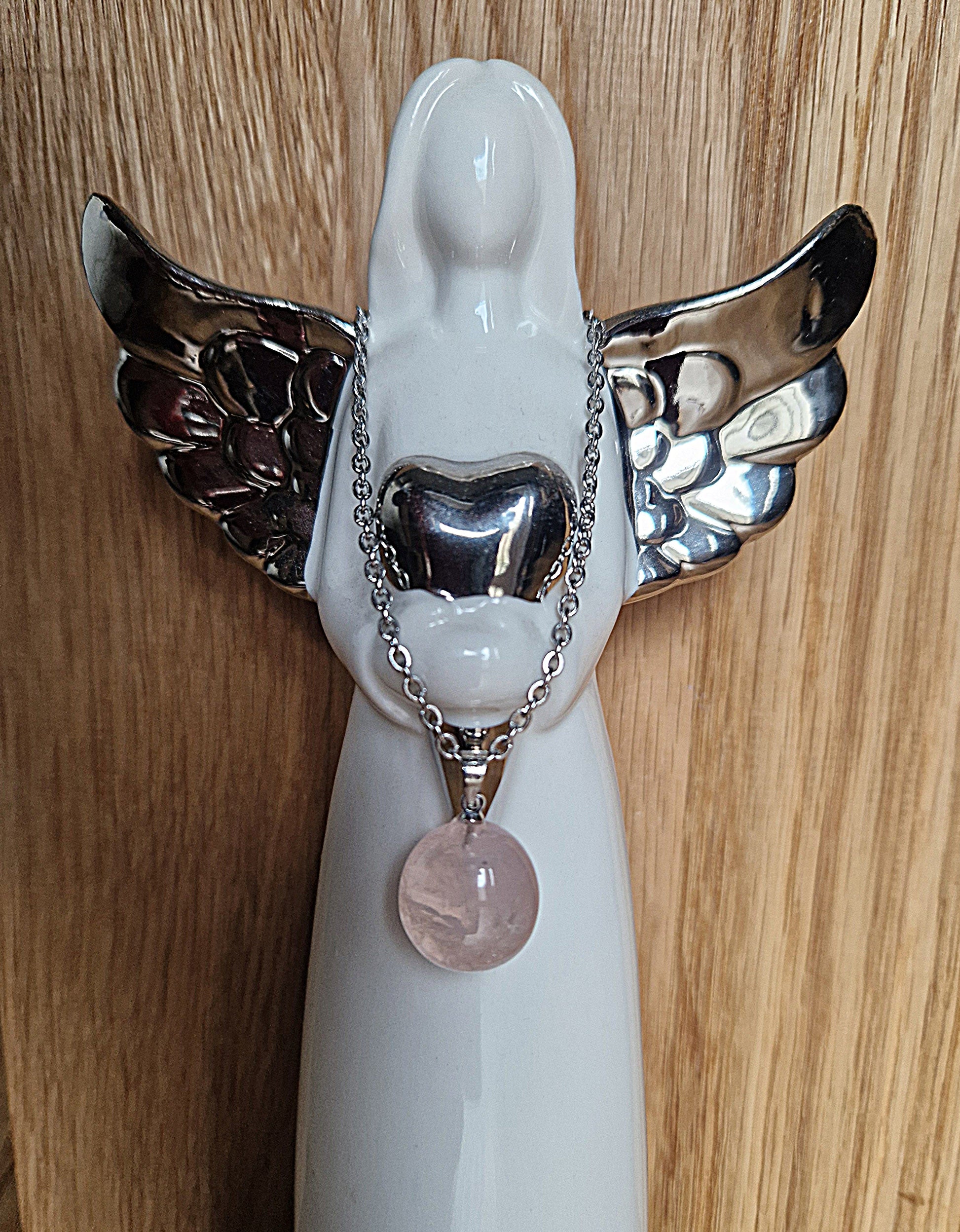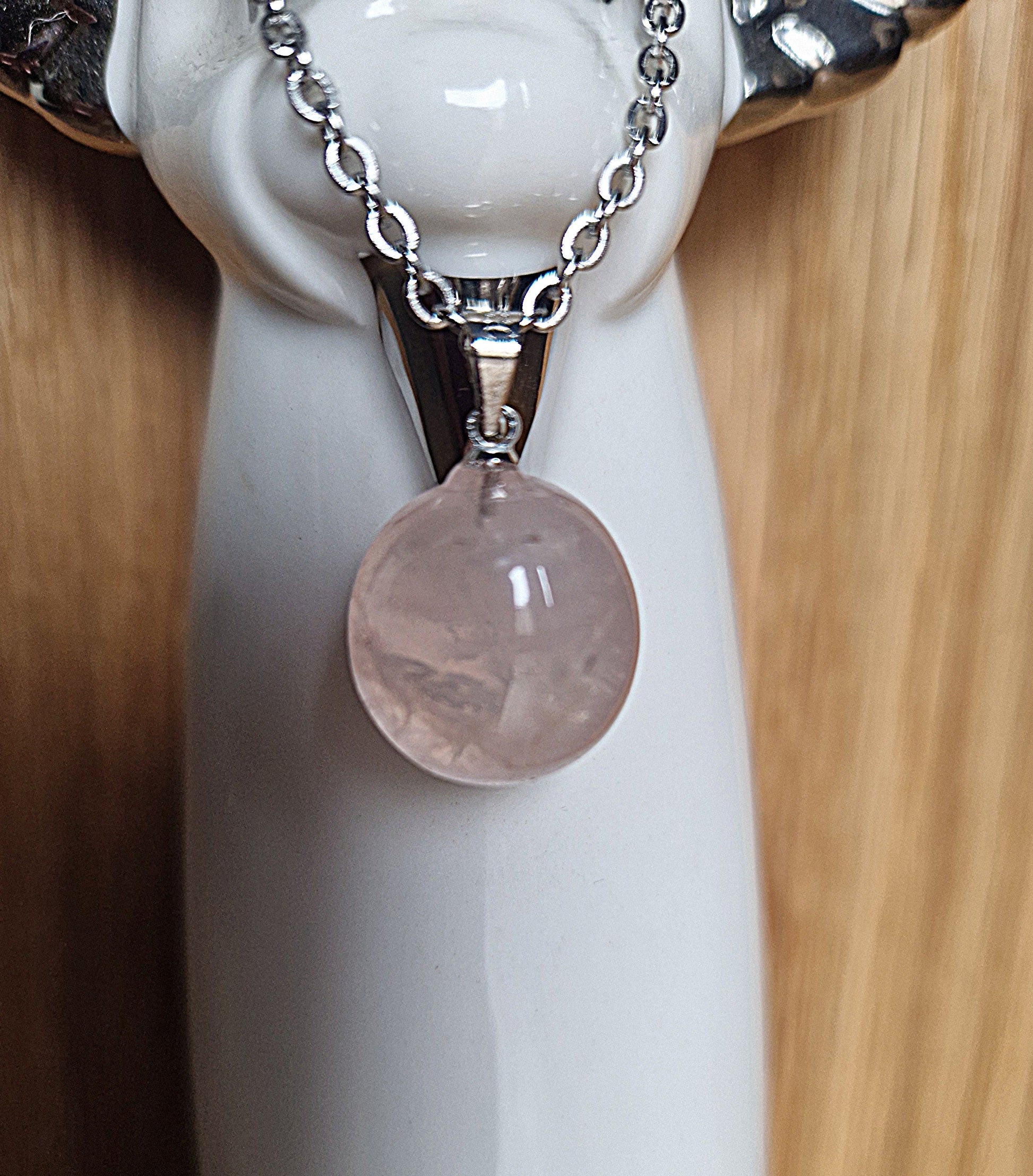 Dieser zarte Rosenquarz-Anhänger (Durchmesser ca. 15 mm) ist ein Symbol für Liebe, Mitgefühl und innere Ruhe.