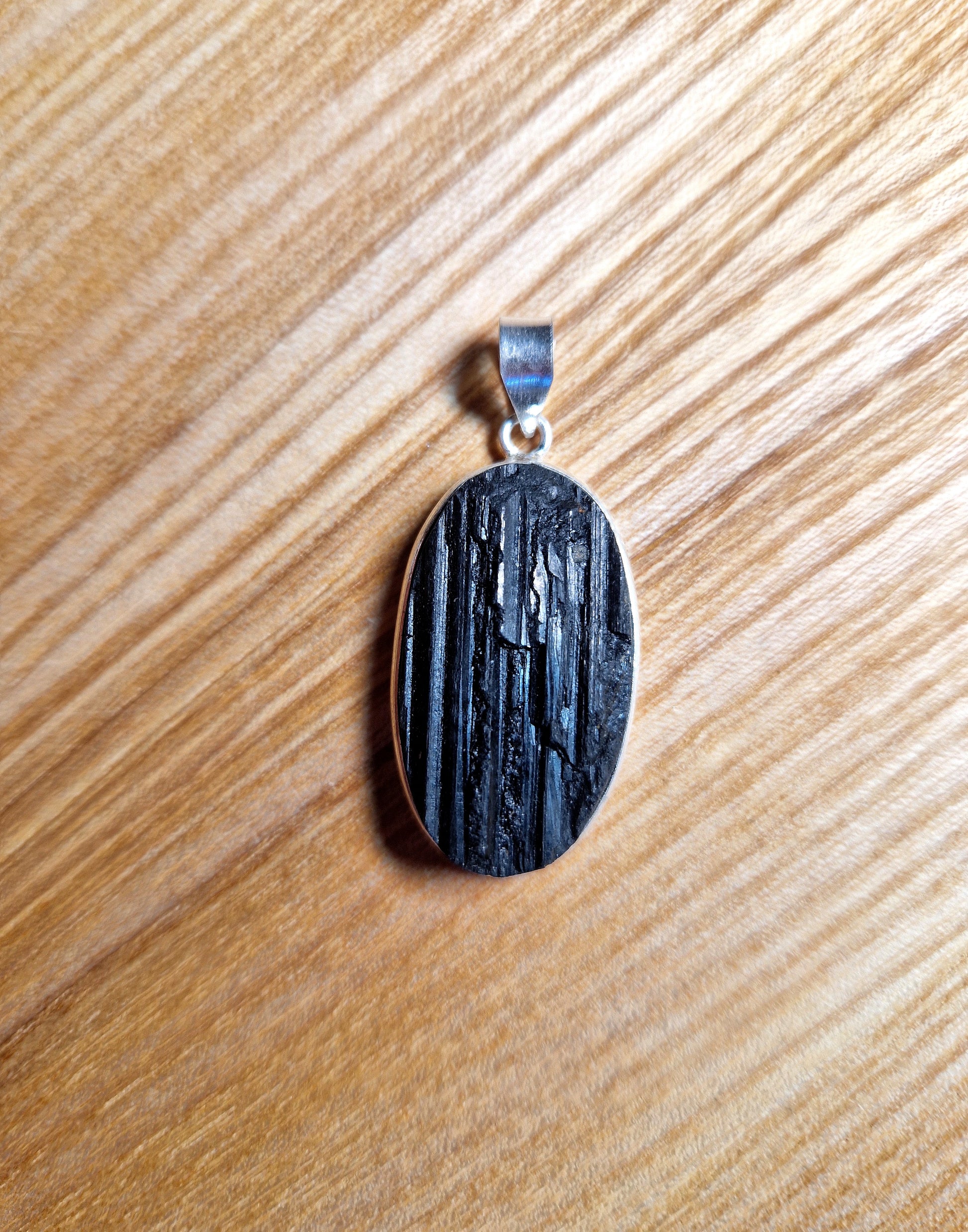 Turmalin Anhänger (naturbelassen) - Dieser rohe Turmalin zeigt sich in seiner ursprünglichen Form und trägt eine kraftvolle, erdende Energie. Er zählt zu den stärksten Schutzsteinen, da er negative Einflüsse abwehrt und ein Gefühl von Stabilität und Sicherheit vermittelt. Ein naturbelassener Begleiter voller schützender Kraft.